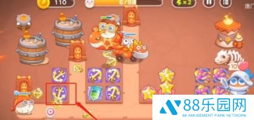 8、第八波道具全清,右侧加一星星塔,把场上一些道具升级,左侧加一船锚,右侧加一星星塔。