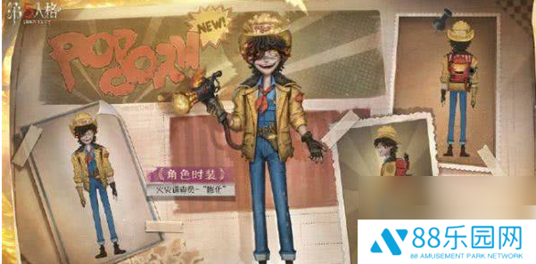 火灾调查员-“膨化”一顶极具标识性的爆米花帽子套在他的头上,微卷的发尾透出火焰的红。一抹焦黑横过他的面庞,他似乎并不在意,仍保持灿烂的笑容。他身着简洁的蓝色背带裤,腰带上别着满是爆米花的小皮袋。点缀着玉米粒图案的夹克边缘有烧灼的痕迹,隐隐透露着他曾经进行的实验。他右手攥着不停喷出浓烟的喷筒,管道上漆着暗红的火焰,这温度即使对于膨化的谷粒来说也太过灼热。