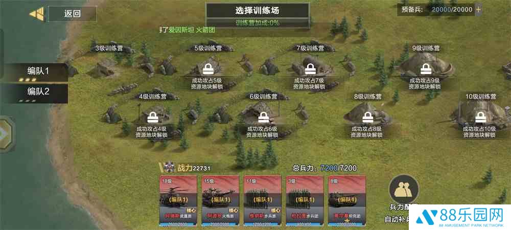 点击征兵处,可以进行训练,在合理的兵损范围内,尽量进行高等级的训练。