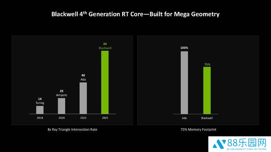 Blackwell架构是NVIDIA近年来更新幅度最大的GPU架构之一,它引入了神经网络着色器,为游戏带来了先进、高效且逼真的渲染方式。相比前代Ada架构,Blackwell架构在AI算力、光线追踪技术、显存能效以及神经网络渲染方面均实现了显著提升。