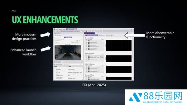 为了助力开发者更好地利用DXR 1.2的新特性,DirectX调试分析工具PIX已第一时间提供支持,并推出了全新API预览版、自定义可视化工具以及UX界面优化。DXR 1.2、PIX升级版以及协作向量技术都将在4月底随Agility SDK预览版一同发布。