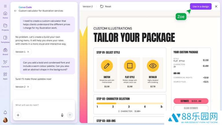 借助 Canva Code 这一新工具,用户还可以通过助手创建互动地图、自定义计算器等小型应用,并将这些应用集成到设计中。