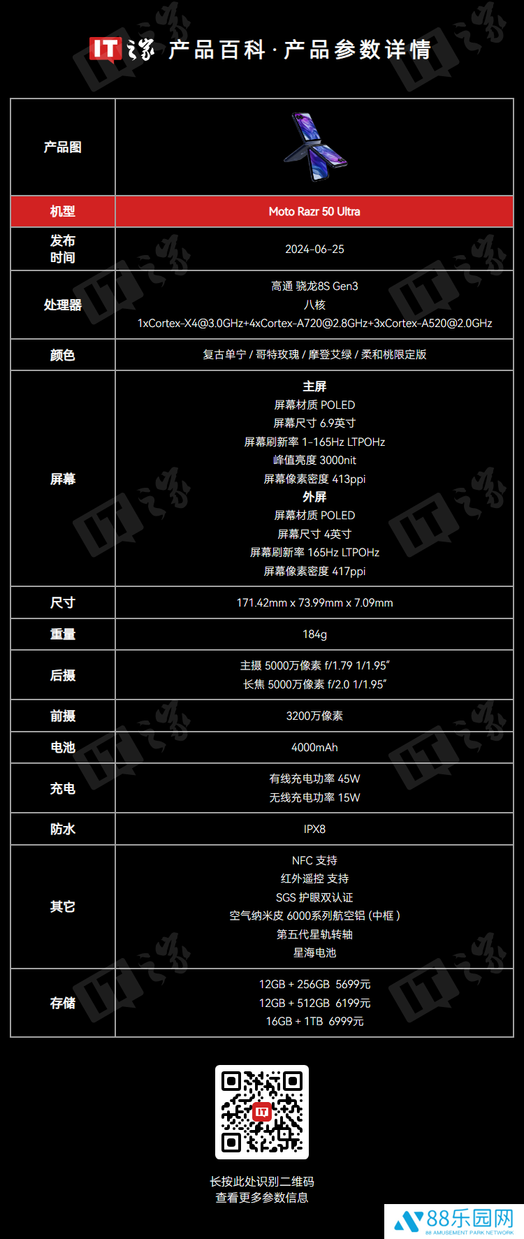 本站附moto razr 50 Ultra 折叠屏手机配置表如下: