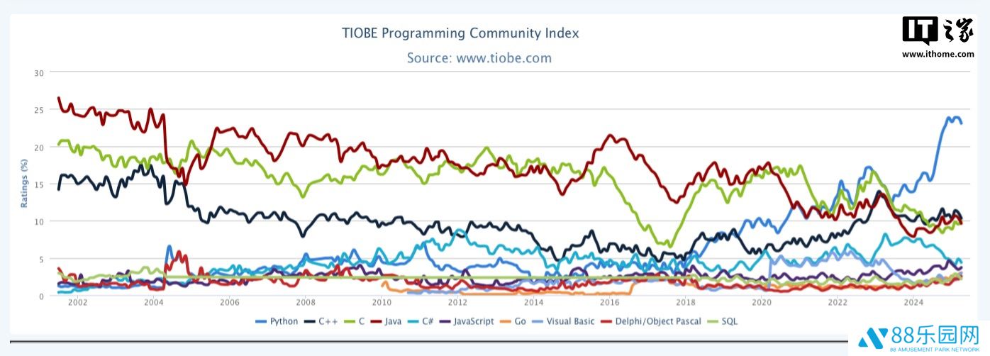 本站 4 月 11 日消息,TIOBE编程社区指数是一个衡量编程语言受欢迎程度的指标,评判的依据来自世界范围内的工程师、课程、供应商及搜索引擎,今天TIOBE官网公布了2025年4月的编程语言排行榜,本站整理如下: