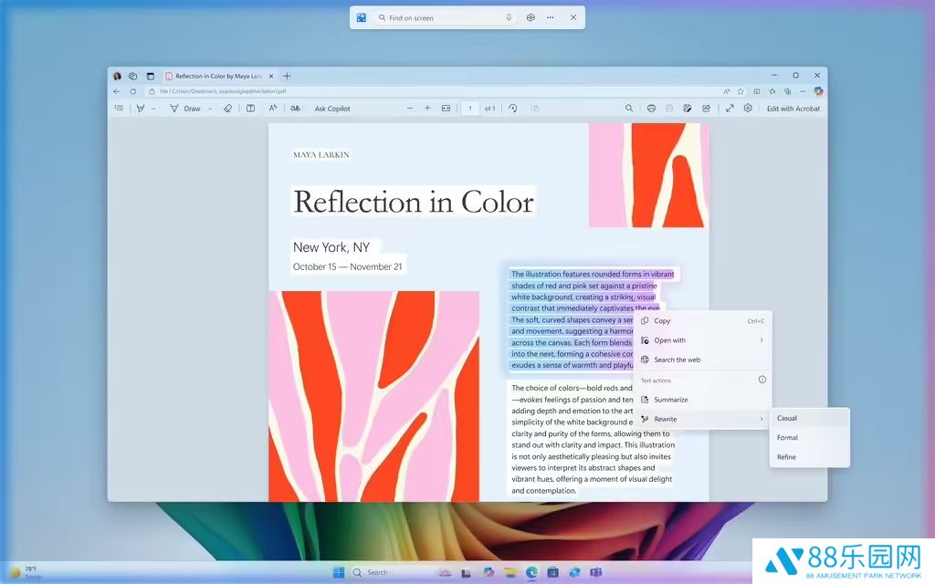 微软称用户可以通过WIN + Q快捷键或从 Windows 屏幕最右侧向内滑动,就可以在Windows调出功能。同时如今基于高通骁龙处理器的Copilot+ PC也支持摘要功能。Click to Do功能还新增支持企业环境中 IT 管理员使用。