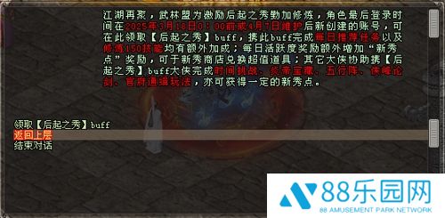1、3月18日后未登录新服【腾蛇踏渊】的大侠或活动开始后创建的新角色,等级≥135级时可在江湖接引使处领取【后起之秀】BUFF享受50%技能经验加成与双倍侠义赏奖励,领取每日活跃奖励时候将获得新秀令。