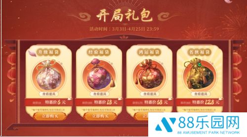3、开局礼包低至一折起,星火炭、名侠简录、名仕简录、符文宝盒等珍贵材料低价大促销!