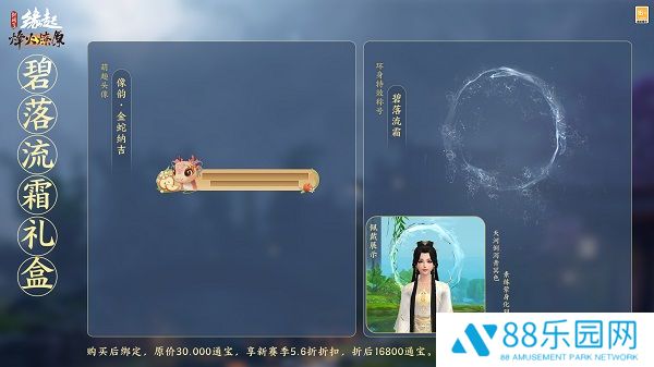 特效称号「碧落流霜礼盒」 碧落云开,流霜泻玉。特效称号「碧落流霜」凝天河碎琼而成,于侠士身后幻化出流动水环,剔透若琉璃,流转似云烟。水珠飞溅,荧光点点若星屑,所过之处霜雾氤氲,寒潭涟漪层层漾开。