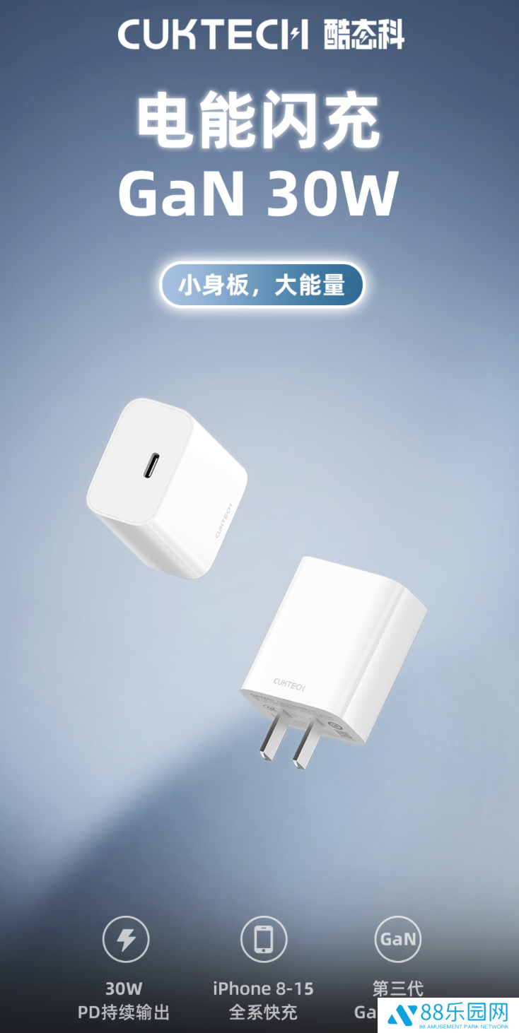 酷态科去年在京东上架一款30W USB-C充电头,支持PD快充,日常售价 26.9 元,首发价 25元。
