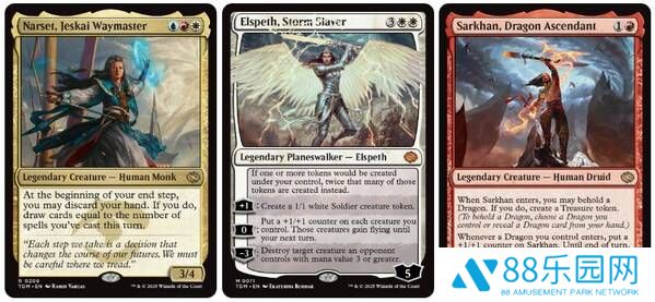 此次新系列引入了诸多创新元素。Dragonstorms作为一种全新的结界卡牌,拥有强大的进场异能,当玩家使用龙牌时,可以选择将其返回手牌并重新施放。Omen作为一个全新的卡牌子类别,让玩家在施放法术或巨龙之间做出选择,为游戏策略增添了更多可能性。