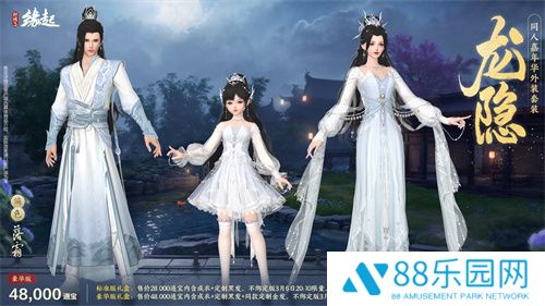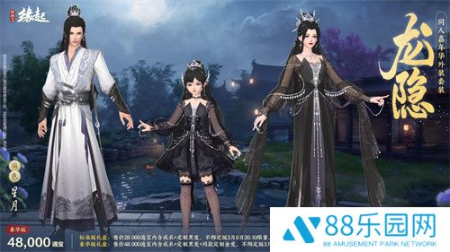 豪华版礼盒:售价48,000通宝内含成衣+定制黑发+同款定制金发,不绑定版3月6日20:15限量上架500份。