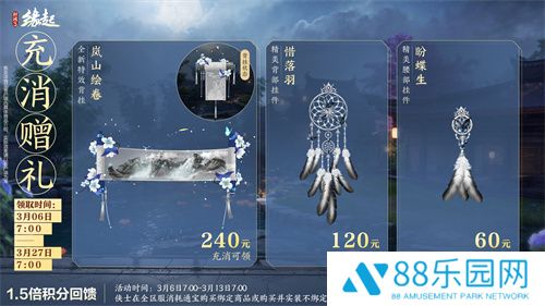 3月6日7:00-3月13日7:00,侠士在全区服消耗通宝购买绑定商品或购买并实装不绑定商品时,可享150%积分限时回馈!