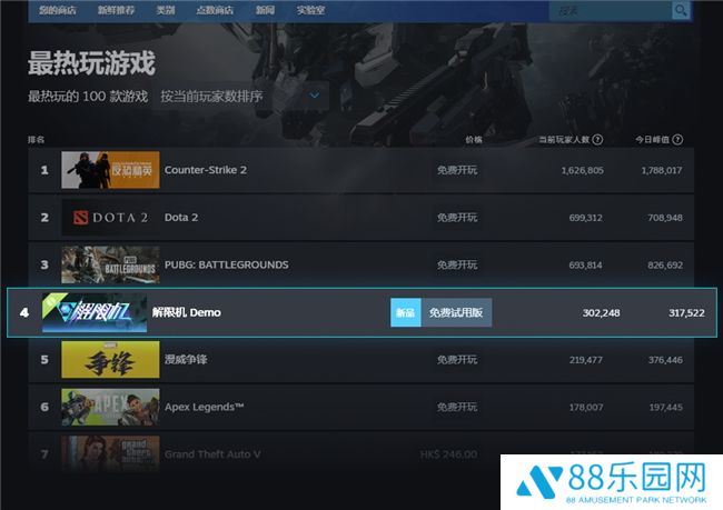 据统计,截至2月27日,《解限机》在各大游戏平台的玩家总人数逾226万,PC端最高同时在线人数一度突破31.7万,全球排名第四位,同期在steam平台超过了《漫威争锋》与《GTA5》等热门游戏。