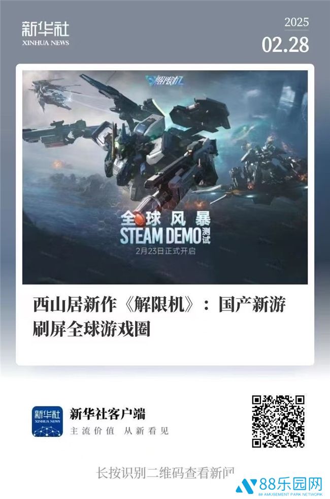 2月28日,新华社盛赞《解限机》在近期测试中取得的佳绩,直言这款游戏刷屏了全球游戏圈。