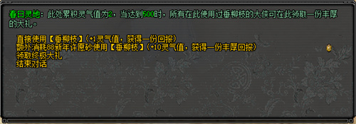 春天到啦,成都的绿树也需要大侠们的灵气滋养!活动期间,每天通过“在线系统”和“活跃系统”就能获得【灵气珠】,把它们上交到成都中间的绿树,就能增加绿树的灵气值哦!每天贡献100点灵气值,就能领取一份好礼!