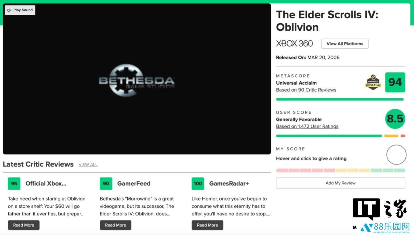 作为比较,本站获悉原版《上古卷轴 4:湮没》于 2006 年发售,赢得了众多评论员的好评,获得许多奖项,在 Metacritic 得到了 94 分的高分。