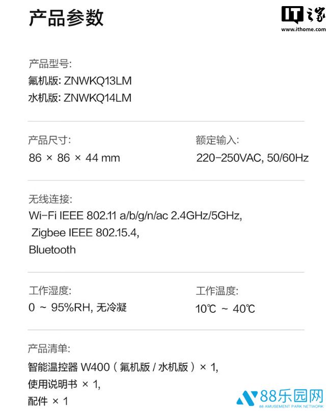 本站附绿米 Aqara 智能温控器 W400 产品参数如下: