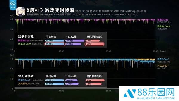 在跑分测试中,第四代骁龙8s与上一代骁龙8的成绩相当接近,但在综合能效方面却展现出了明显的优势。而在实际游戏测试中,该处理器的帧率表现甚至超越了第三代骁龙8和天机9300+两款前代旗舰,为用户带来了极致流畅的游戏体验。