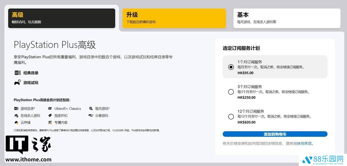对于最高级别的PlayStation Plus高级服务,价格同样有所调整。1个月定期服务由HKD 95调整为HKD 110,增加15港币;3个月定期服务由HKD 250上调至HKD 315,涨幅65港币;12个月定期服务则从HKD 820上涨至HKD 1,000,增加180港币。按当前汇率换算,人民币涨幅分别为14.2元、61.6元和171元。