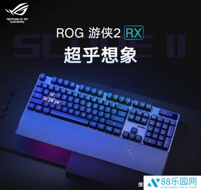 另外,ROG还为大家带来了游侠2 RX机械有线键盘。这款键盘采用了ROG自研的RX光学机械轴,方形火山口结构带来了稳定的手感。四角固定插座减少了键帽晃动,X结构稳定器确保了触发无抖动,敲击一致。同时,它还具备IP57级的防水防尘功能,无惧灰尘和水渍泼溅。键盘顶部采用了航空级别铝合金面板,增加了重量感和坚固耐用性。底部增加了一层吸音泡棉层,能够吸收键盘敲击的回音和噪音,改善手感和听感。