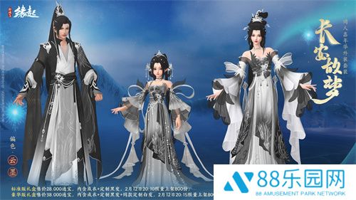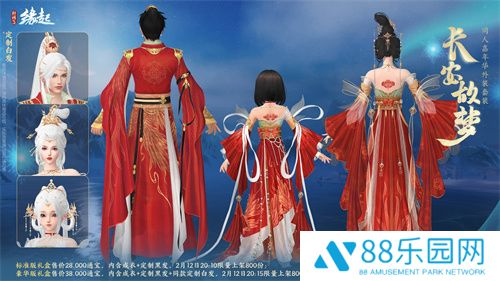 不绑定款豪华版礼盒售价38,000通宝,内含成衣+定制黑发+同款定制白发,2月12日20:15限量上架800份。