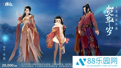 元宵缤纷新品2月12日上架,三档充值消费赠礼更新!充消达到对应档位即可免费领取。2月12日7:00-2月19日7:00,双倍积分限时回馈,侠士在全区服消耗通宝购买绑定商品或购买并实装不绑定商品时,立享200%积分回馈!