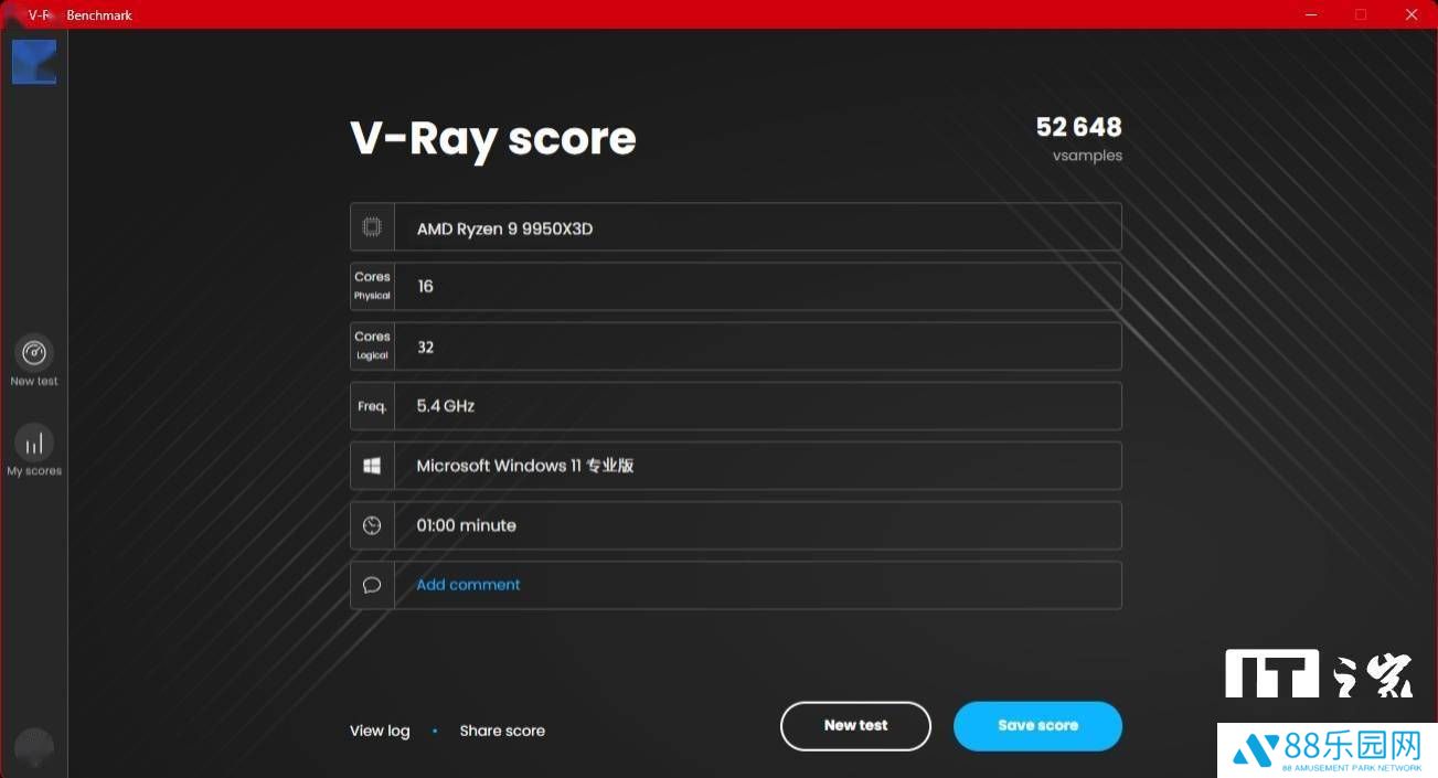 在生产力测试方面,锐龙9 9950X3D同样表现出色。在7-Zip基准测试中,其压缩和解压性能均领先锐龙7 9800X3D约60%以上。在V-Ray Benchmark 6.0测试中,其CPU渲染成绩达到了52648分,相比锐龙7 9800X3D提升了83.4%。这些测试结果充分证明了锐龙9 9950X3D在生产力领域的强大实力。