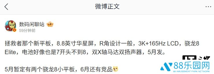 博主还在评论区回复了部分网友的问题:针对平板只有iPad和其他的言论,博主回复“iPad mini没有高刷”;针对新平板的屏幕是否为旧款屏幕,博主表示“不,这次是新屏幕,前代是 8.8"2.5K”。