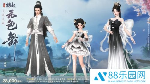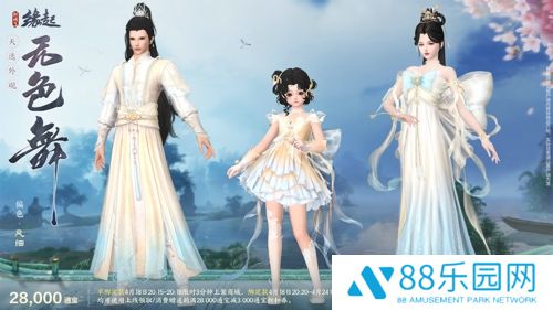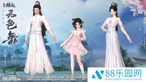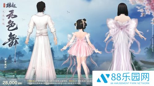 天选计划系列外装“天选无色舞” 星屑缀流霜作扣,云骸碾玉织成绦。全新天选计划系列外装“天选无色舞”以大方剪裁打造特色设计感,共有4款偏色可供选购! 其中,“天选无色舞”的穿脱效果有定制的特殊切换特效,流光轻纱华美融解或重组,打造与众不同的视觉效果,更显出尘!男款版型工整大方,上衣用花朵刺绣不但凸显精致,还在对称设计之中增加了灵动破局元素,再将两袖利落束起,修身立体,潇洒不羁。女款身后的巨型蝴蝶结夸张亮眼,为整体裙装注入活泼俏皮,美好又浪漫。珍珠饰品增添优雅,裙摆熠熠生光,空庭素练,且绕星寒。 ✦售卖信息 售价28,000通宝, 不绑定款4月18日20:15-20:18限时上架3分钟, 可使用专属折扣券在购买时享受满28,000通宝减3,000通宝折扣优惠。 绑定款4月18日20:20-4月24日7:00限时上架, 可使用专属折扣券在购买时享受满28,000通宝减3,000通宝折扣优惠。