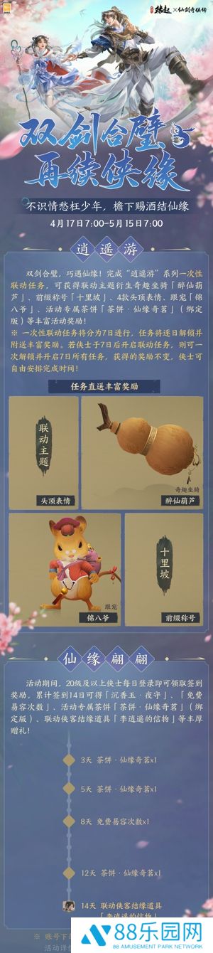 【双剑合璧,共续仙缘】 壶中酒尽时,笑对苍生,少年肝胆。新侠客、新玩法、新奖励等重磅内容即将上线,精彩不容错过!