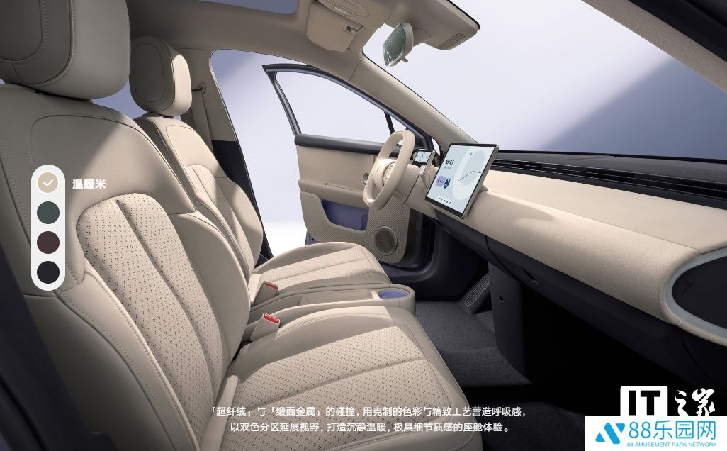 本站获悉,该车正面配备“三重奏”大灯,提供灵感紫、新生绿、悠然米、纯粹白、探索灰五款车色。该车配备同级最大92L前备箱,后座翻折后连成超大纯平空间超1250L。该车车身结构高强度钢与铝合金材料使用占比高达83.4%,超宽双前防撞梁,超强双前门防撞梁,配备同级最多的9个安全气囊。