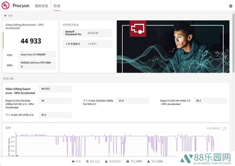 除了游戏性能,RTX 5060 Ti曜夜16GB显卡在视频编解码和AI任务上也表现出色。在Procyon视频编辑测试中,显卡的得分高达44933,显示出强大的硬件加速能力。同时,在Blender和V-Ray等3D渲染软件中,显卡也展现出了不俗的性能。
