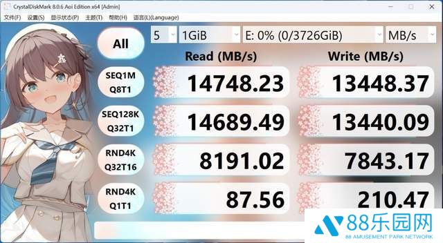在基准测试中,三星9100 PRO 4TB的连续读取速度高达14748.23MB/s和13448.37MB/s,接近标称值,达到了“满血”PCIe 5.0水准。其顺序读写性能相比上代旗舰产品990 PRO近乎翻倍。