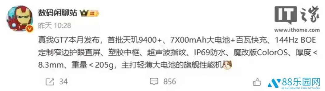 本站 4 月 21 日消息,4 月 11 日,真我官方正式宣布:真我GT7手机将于 4 月 23 日 16 时发布。目前已经确认,真我GT7将首批搭载天玑 9400 + 旗舰芯片,并且升级了全新 GT 性能引擎 2.0 ,搭载芯片级内核技术,宣称“无限稳帧、不挑游戏”。