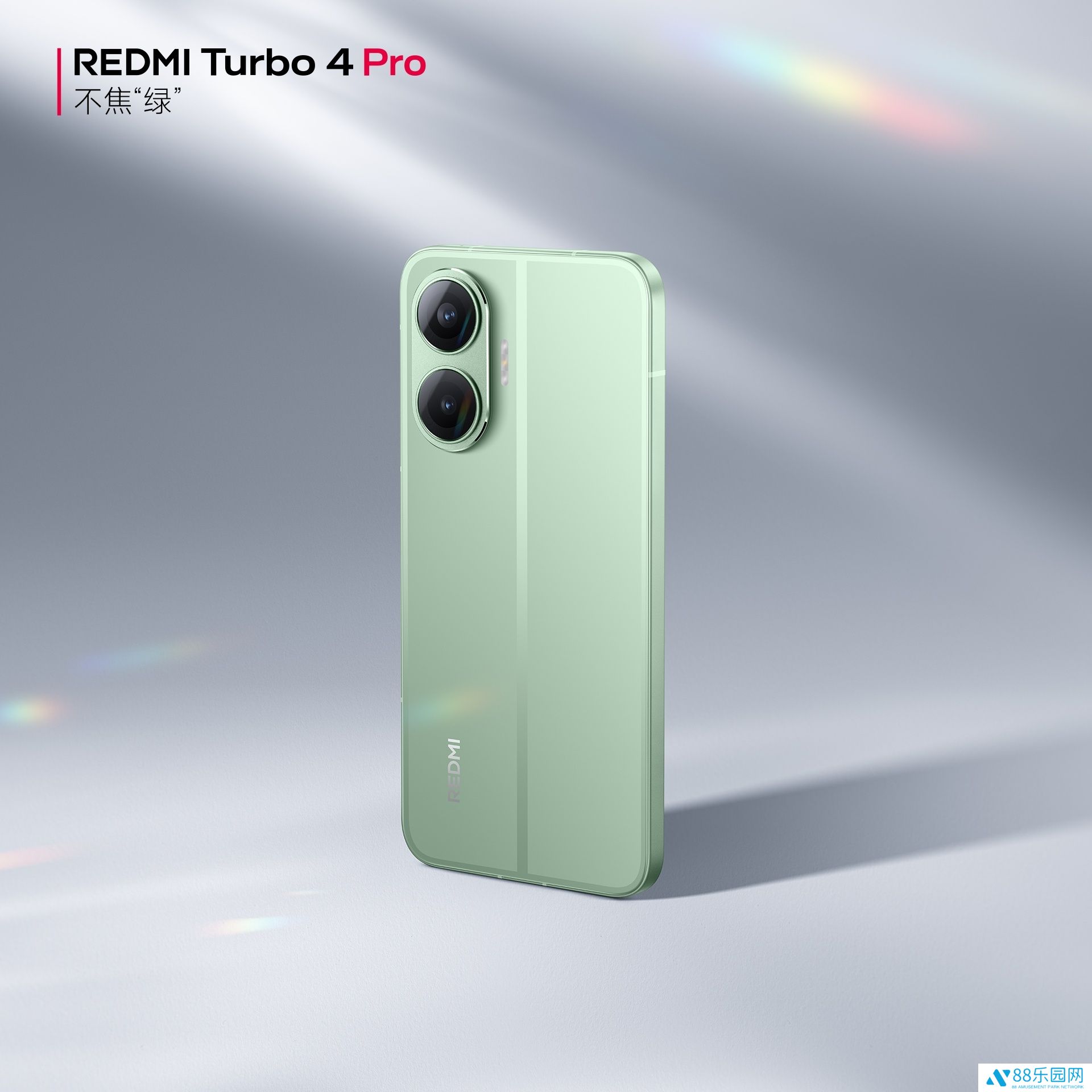 REDMI Turbo 4 Pro 新机可选黑、白、绿三种颜色,采用大 R 角设计、金属边框、柔雾玻璃后盖。