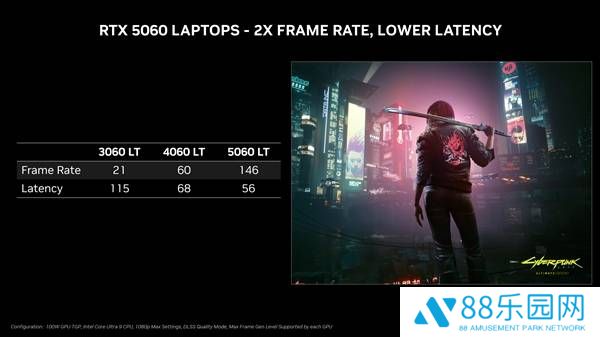 RTX 5060 Laptop搭载了GB206芯片,但CUDA核心数量相较于桌面版有所缩减,具体为3328个,这一数字较桌面版减少了约15%。尽管核心数有所减少,NVIDIA仍对该显卡的性能充满信心,声称其表现与桌面版相近,并强调了在DLSS 4和Reflex 2技术加持下,帧率的大幅提升与延迟的显著降低。