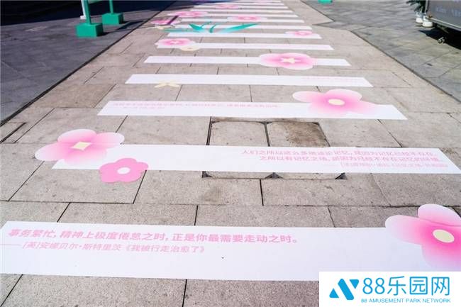 继续前行,一条由粉色花瓣与优美诗句铺就的诗意漫步道映入眼帘。这条浪漫的路线让人们在行走间与文学不期而遇,感受着文字与自然交织的韵律。许多市民沿着这条路线漫步,拍照留念,享受着这份难得的宁静与美好。