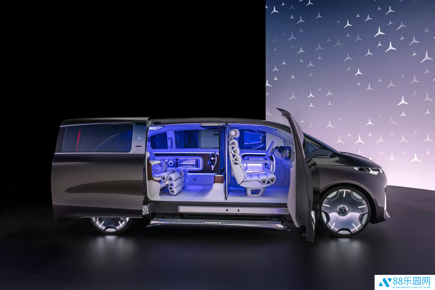 梅赛德斯表示,Vision V 概念车所采用的大部分设计和技术,将装备在 2026 年量产的 V-Class 车型中,会采用 Mercedes-Benz Van Electric Architecture(VAN.EA)平台。